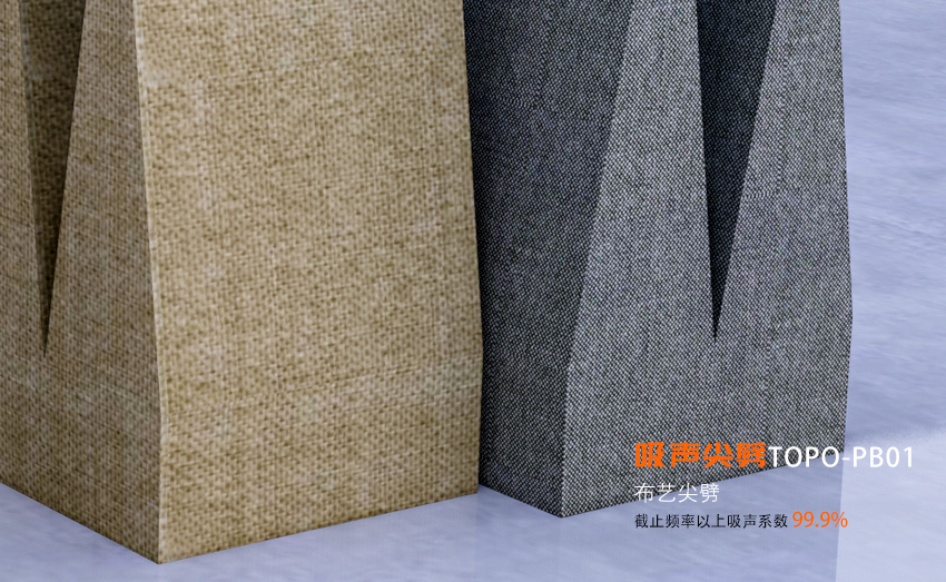 布藝尖劈:表面阻燃A級布藝;中間填充環(huán)保型超細(xì)玻璃棉。性價比比較高